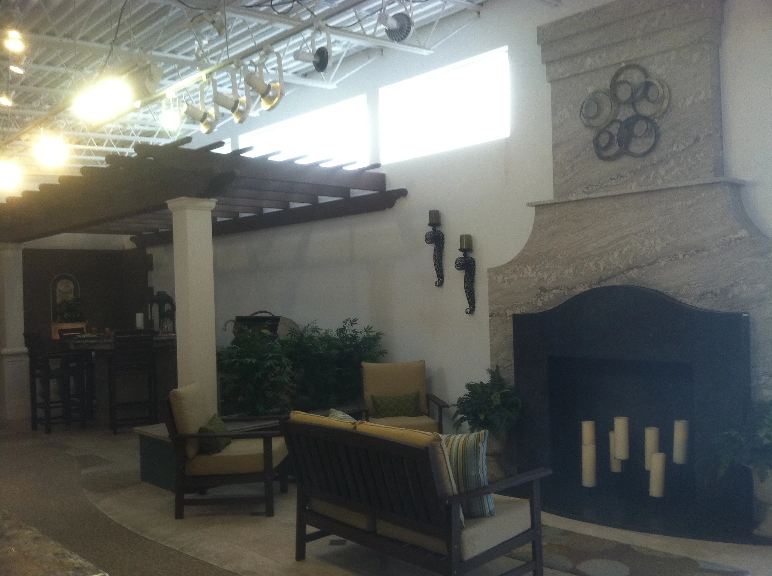 The purpose of this mural was to create an outdoor setting for three disparate granite displays. I made the background diffused and rather dull with the aim of keeping attention on the displays rather than on the mural. I needed to employ many visual “tricks” to create a cohesive environment that played well up close and at a distance from many different viewpoints. The result is that, while no particular view is perfect, this mural can be viewed at any angle and still convey a convincing sense of depth.